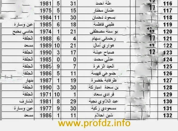 القائمة الاسمية للناجحين في مسابقة توظيف اساتذة التعليم الابتدائي لولاية الجلفة 2014